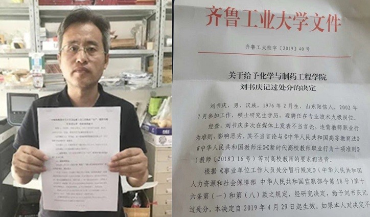本人刘书庆,系齐鲁工业大学化学与制药工程学院一名普通老师,准确的说是实验管理员,因我在2018年4月19日就被学校没有任何正当理由地,没有任何预兆地调离了教学岗位,将我调整为实验管理岗,本人当时还正上着两门课。