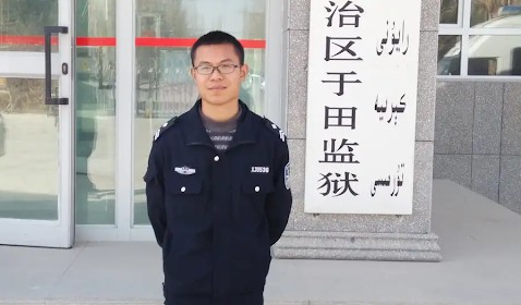 题图:前新疆警察张亚博,2015年3月20日于新疆于田监狱门口。这是他当上警察后第一次押送囚犯入狱。图片由受访者提供。图像来源: Zhang Yabo